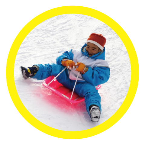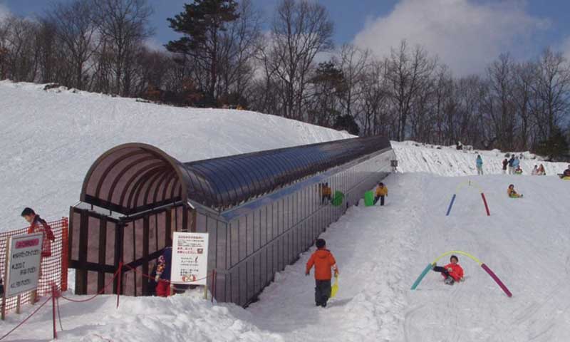 長さ60m幅40m、県内最大級の雪ソリ専用エリア。子どもも大人も楽しく滑れて、登りは動く歩道「スノーウォーク」でラクラク♪