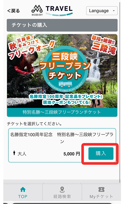 ※有効期間:名勝指定100周年~三段峡フリープラン~利用日当日のみ