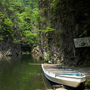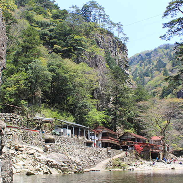 A dining spot located just across the river by boat. Here you can enjoy dishes such as udon noodles and salt-grilled yamame trout while taking in the scenery of Kurobuchi, one of the five great scenic highlights of Sandankyo.