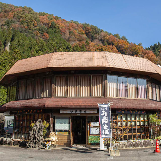 A uniquely shaped restaurant located near the entrance of Sandankyo. Inside, you can enjoy a retro-style atmosphere. The menu features seasonal wild vegetables, udo, fragrant mushroom rice balls, soba noodles, and more.